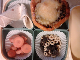 It’s Taco Tuesday! Today’s “tacos” are stuffed peppers. Yum! This is a new recipe to me, though I love regular stuffed peppers (veggie-converted) from my Betty Crocker cookbook. This one is practically the same, but the taco seasoning should give it a new Southwestern spin.