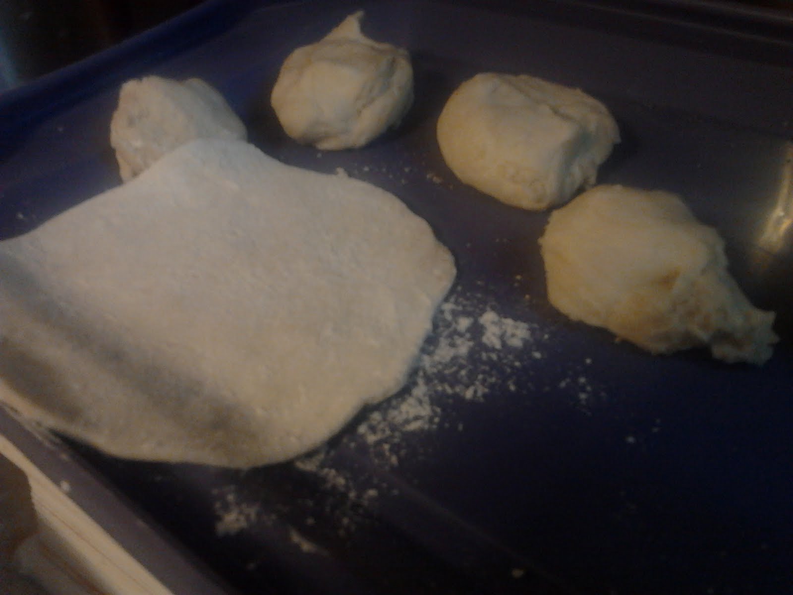 Divide dough into 12 equal balls. Roll balls out into circles about 5 inches in diameter and 2mm thick. Cut circles in half.