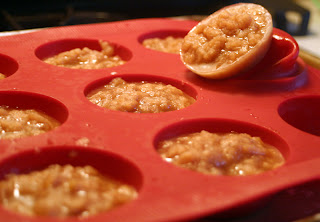 Now that I’ve decided to participate in Get Real in 2012, I am moving away from my conveniently sized kid cups of applesauce (the Mott’s natural packs). I’ll miss their convenience, but it really is a lot less expensive (not to mention healthier) and easier to make adjustments for personal preferences when you make your own. To keep it relatively convenient, I’m using my muffin tin to freeze 1/4 cup portions for future recipe use. The entire batch makes about 4 cups or about 16 1/4 cup servings. This will work much like my Frozen Fruit Cups for toddler teething and sore throats.