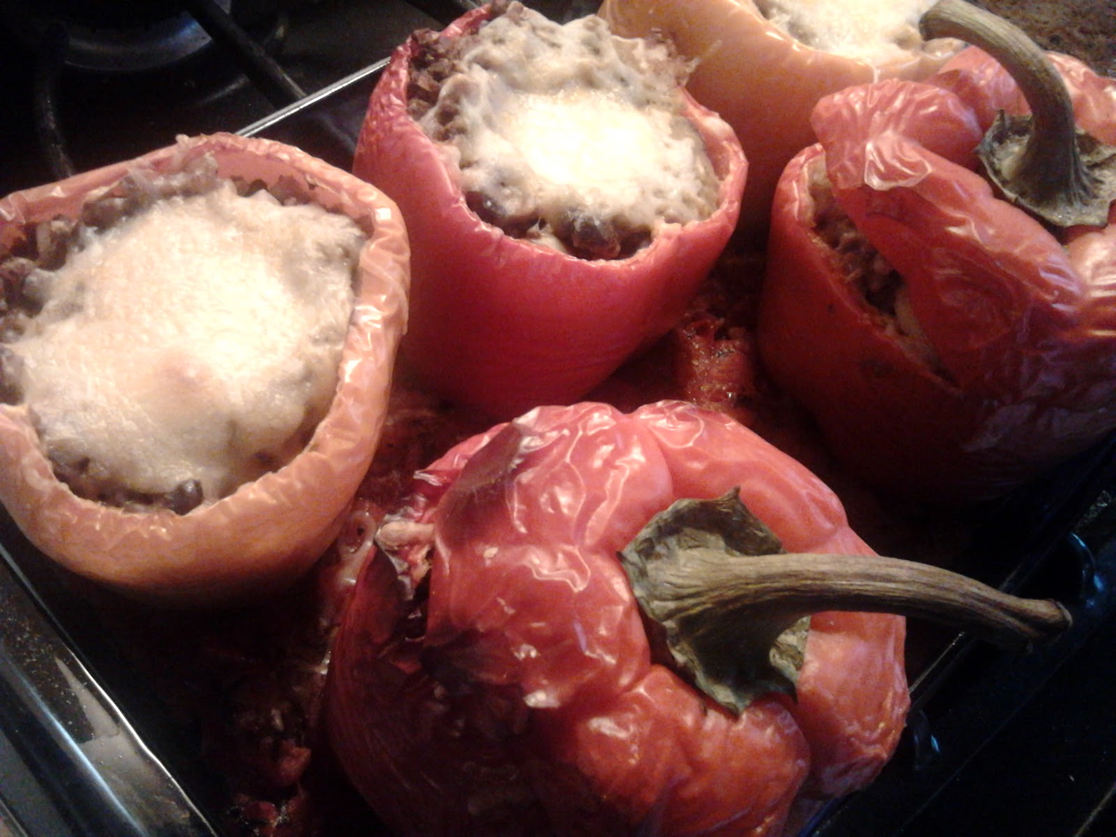 Bake in preheated 375°F oven for 40-45 minutes or until peppers are soft. Cover each pepper with cheese and return to oven, under the broiler, until the cheese melts (less than a minute).