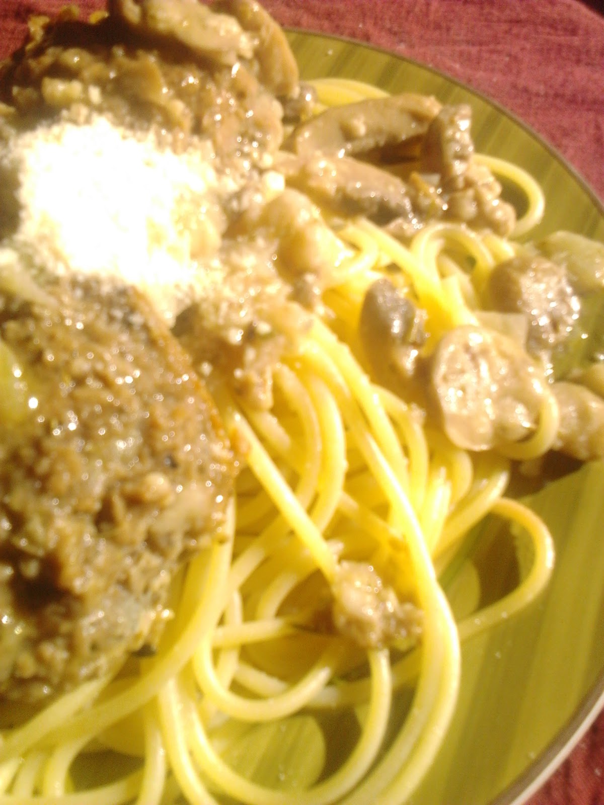 Prepare Meatless Meatballs as directed for sub sandwiches. Meanwhile, prepare pasta. Saute garlic with olive oil in saute pan. When noodles are ready, add noodles and Italian seasoning. Stir in sauce from meatball preparation. Place meatballs on top of pasta serving. Serving suggestion one to two meatballs per plate, depending on size.