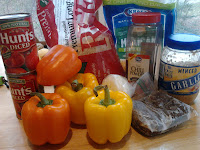 3 bell peppers, seeded and cut (I used orange and yellow)